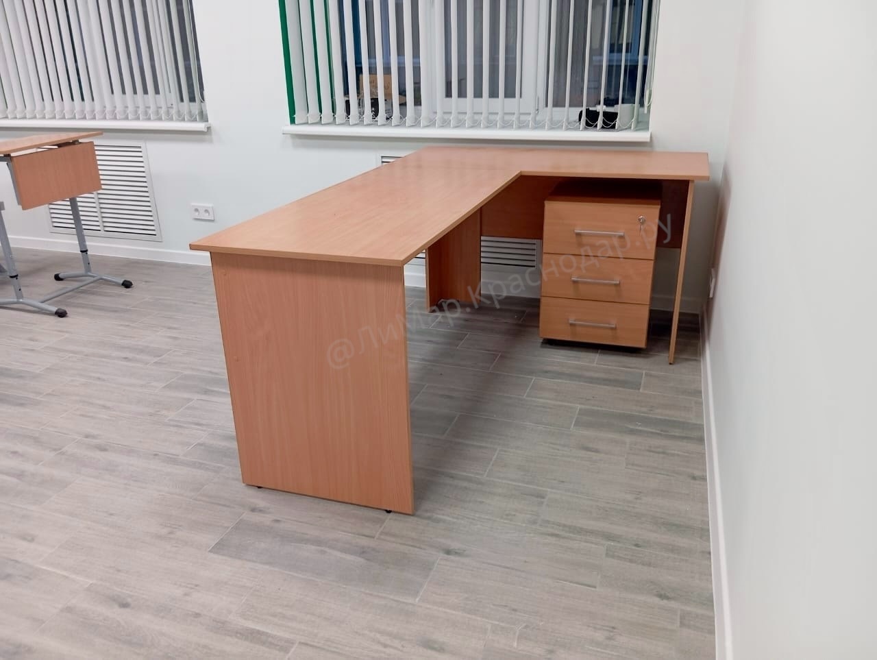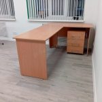 Угловой стол из ЛДСП — универсальное решение для преподавателя или офисного сотрудника. Практичная Г-образная форма обеспечивает удобство работы с документами, техникой и учебными материалами. Столешница и опоры выполнены из ЛДСП 16 мм, цвет — бук Бавария.