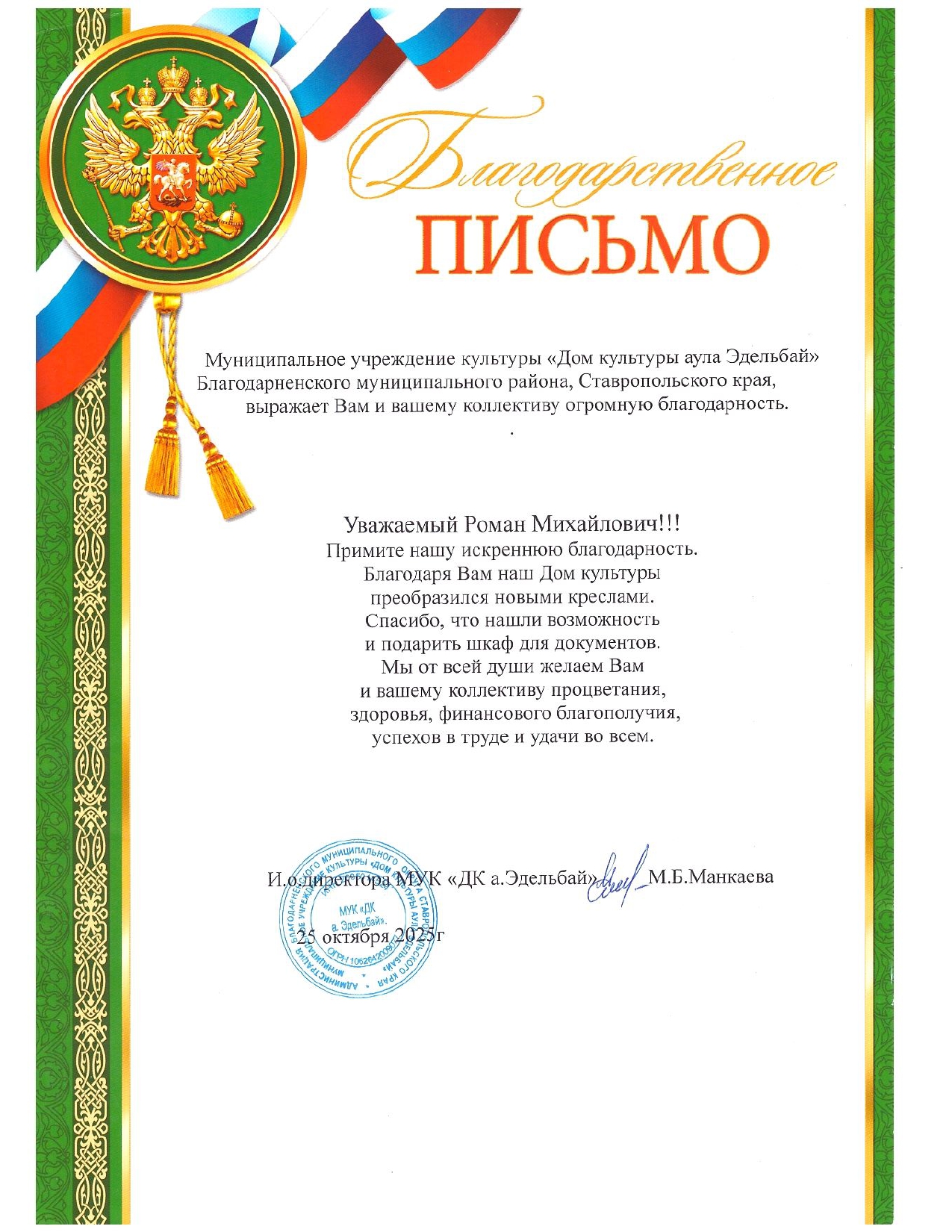 Благодарственное письмо