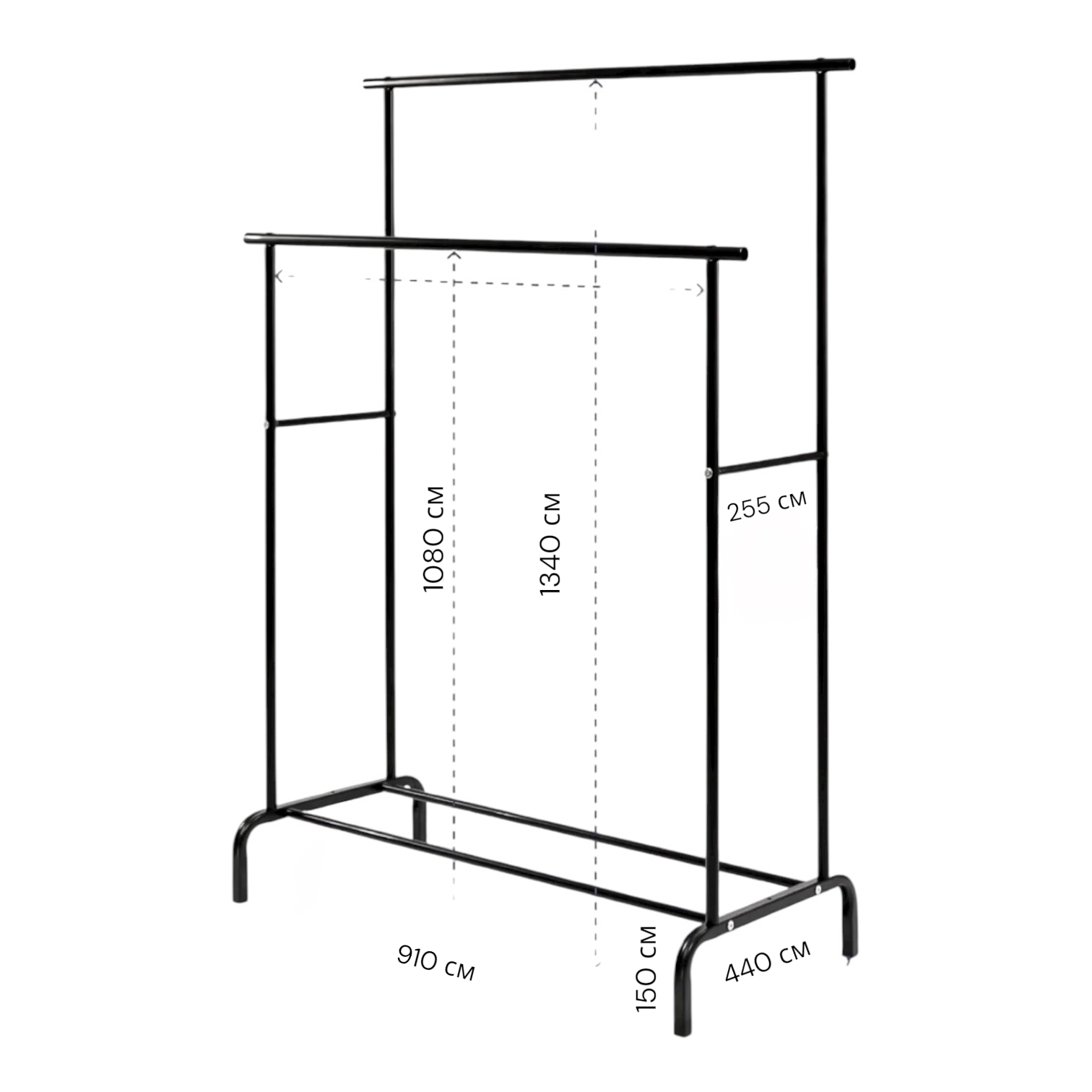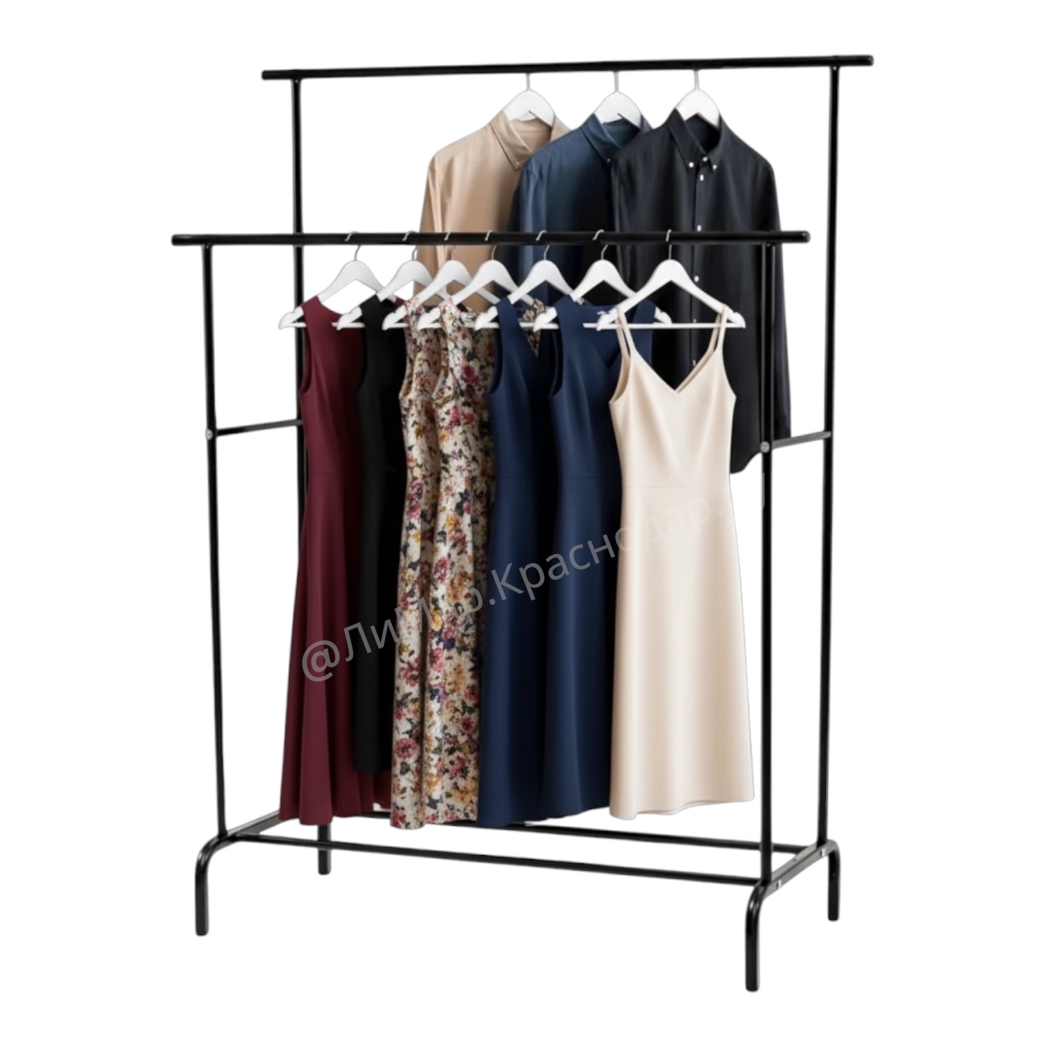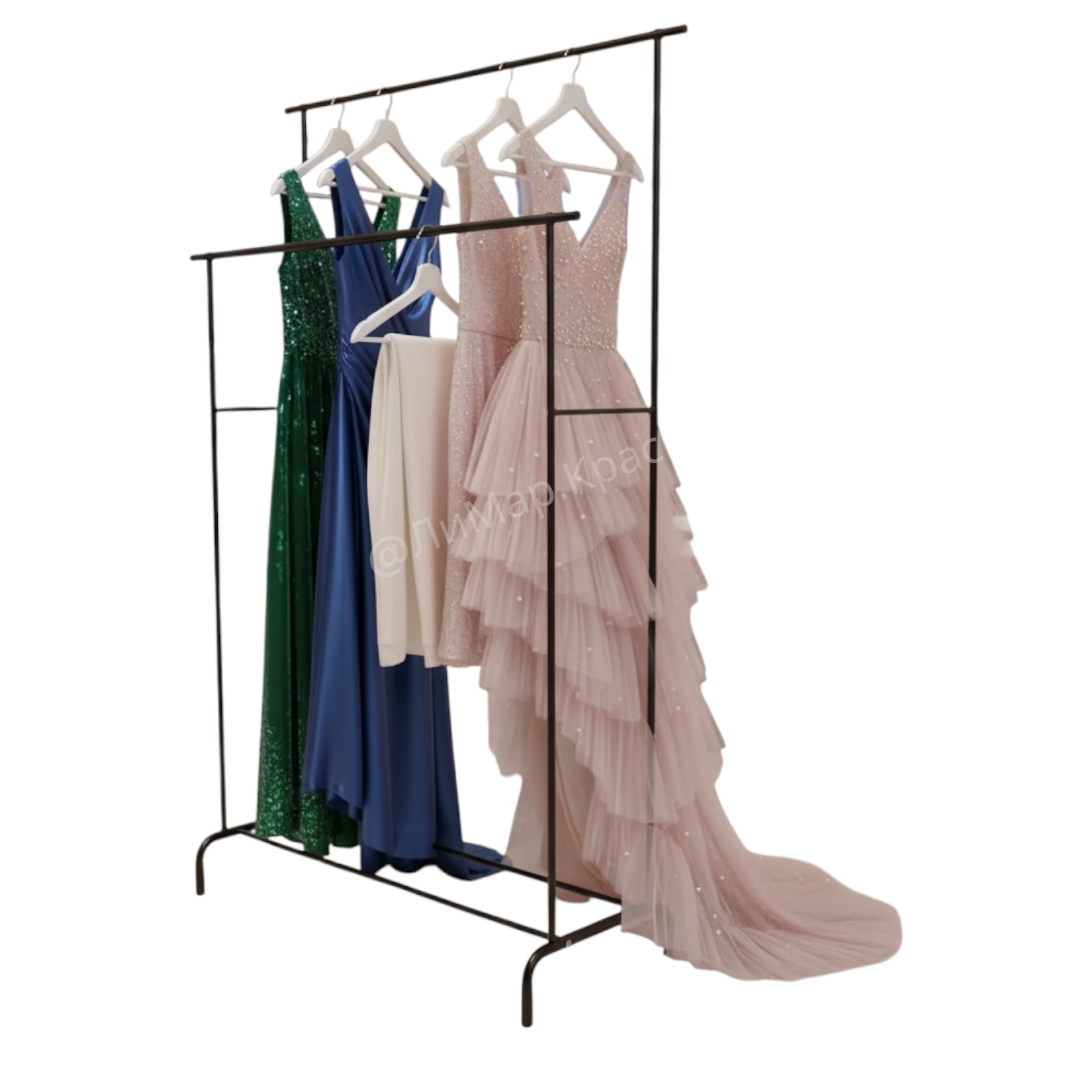 Разборное двойное напольное вешало — прочное и лёгкое решение для организации хранения одежды в гардеробных, магазинах, учебных и офисных помещениях. Конструкция выполнена из профильной трубы 20×20×1,5 мм и круглых труб Ø20, Ø18, Ø16, Ø14 мм, что обеспечивает жёсткость и устойчивость при нагрузке до 80 кг.